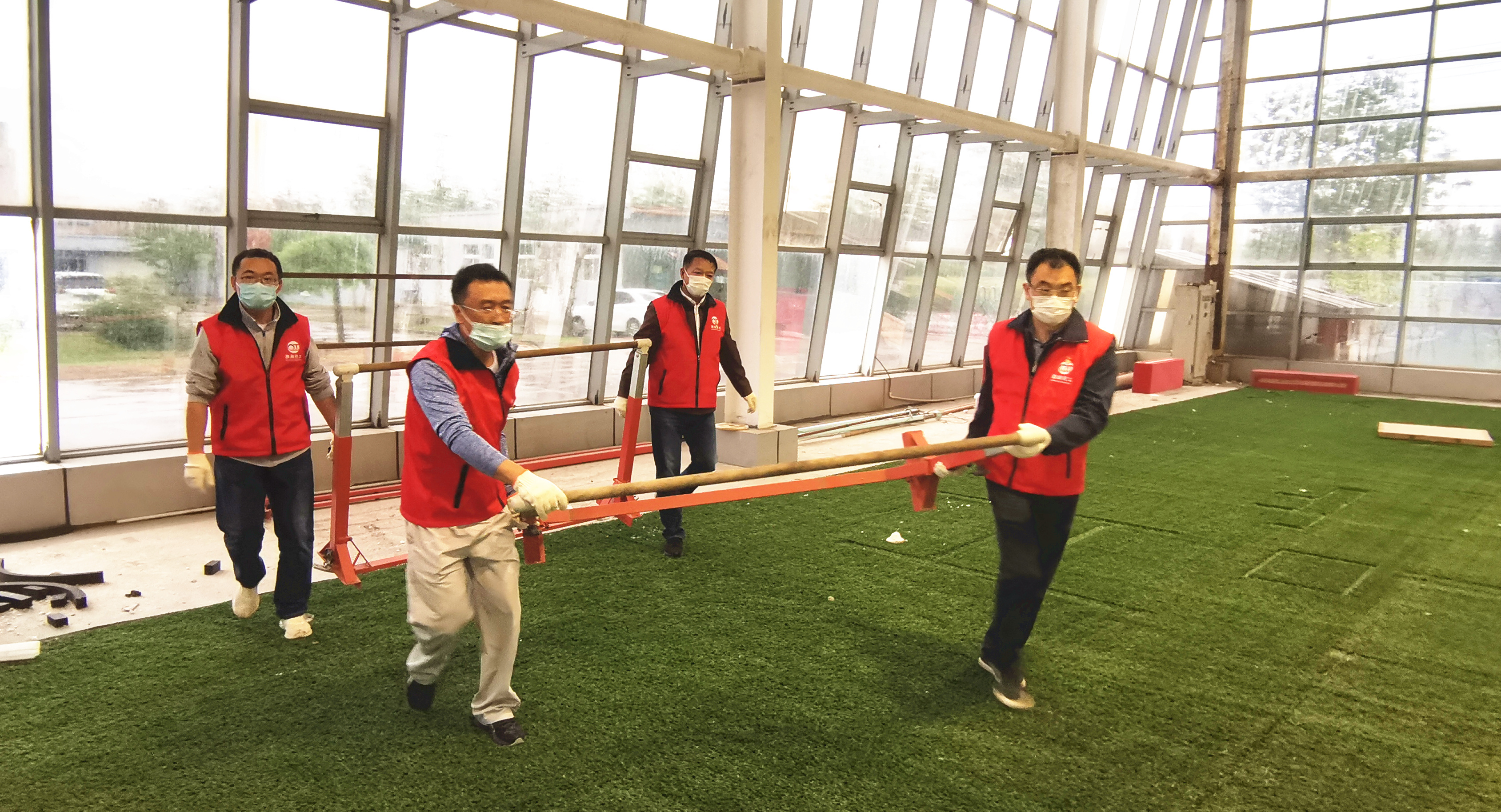 春合公司总经理禡玉春说:“大家真的太辛苦了!我们的器材不仅体积大而且都很重,一个杠铃片就要一百斤,可咱们的同志们不怕辛苦,撸起袖子就干,让我们基层企业深深感受到集团党委的关怀与温暖。”