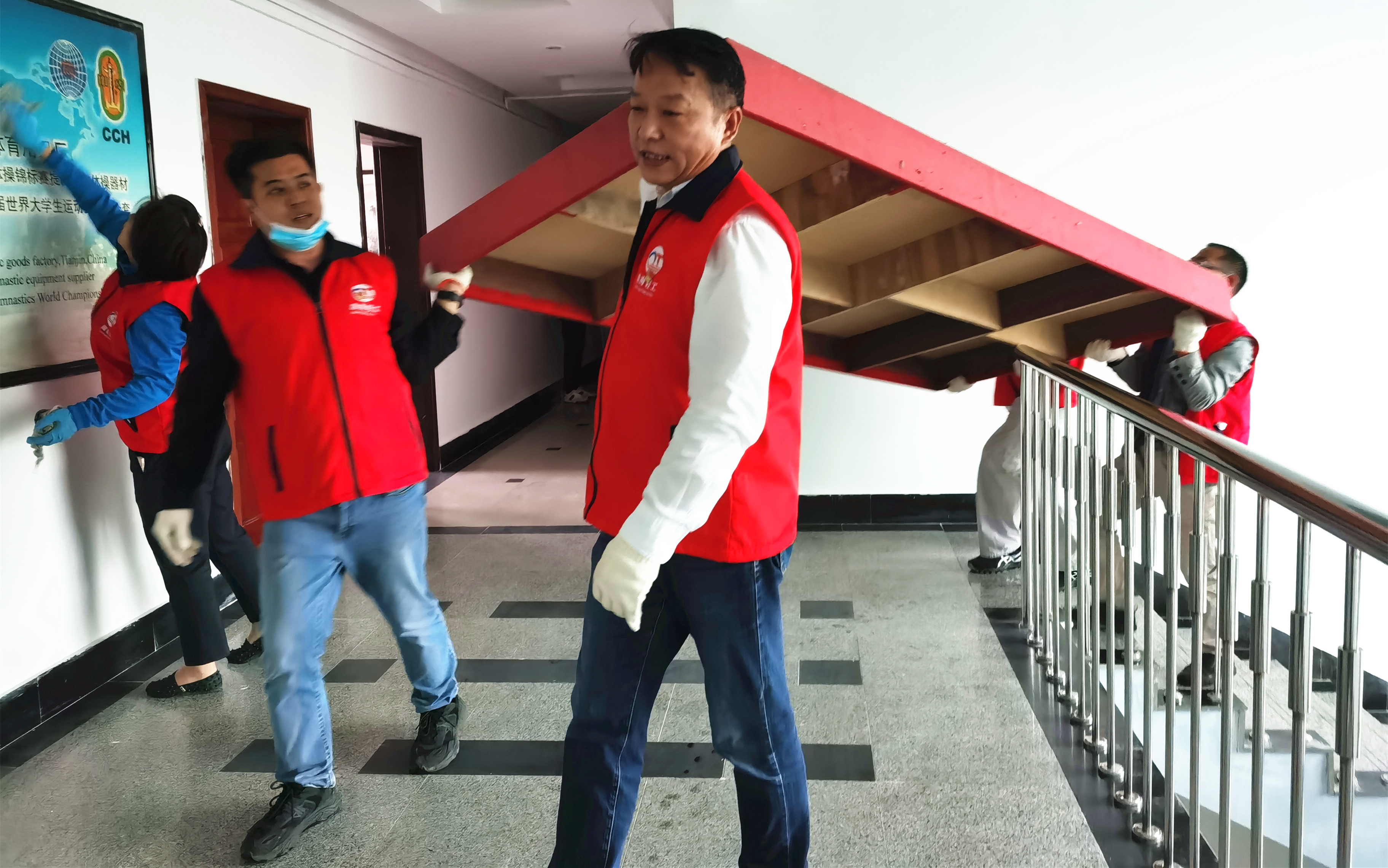 5月6日,渤轻集团总部志愿服务队26人、隆兴集团“红色先行”志愿服务队13人到春合公司联合开展志愿服务活动。参加志愿服务的男队员们,不顾下雨地湿路滑、体育器材体积大且沉重等困难,齐心协力将满大厅的器材全部搬运到了仓库存放,女队员们对新粉刷过的办公楼进行清洁打扫,展厅全部腾空,办公楼焕然一新。大家不怕脏、不怕苦,干劲十足,为基层企业实实在在解决了问题。