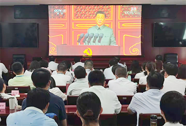7月1日上午8时,庆祝中国共产党成立100周年大会在北京天安门广场隆重举行。中共中央总书记、国家主席、中央军委主席习近平发表重要讲话。渤轻集团组织系统广大党员干部、职工群众、团员青年怀着激动的心情,认真收看了大会直播盛况,共庆中国共产党百年华诞。