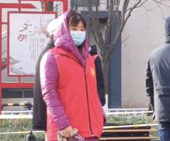 副总经理王芳在假日润园社区“临时上岗”,成为了核酸检测第三通道引导员。