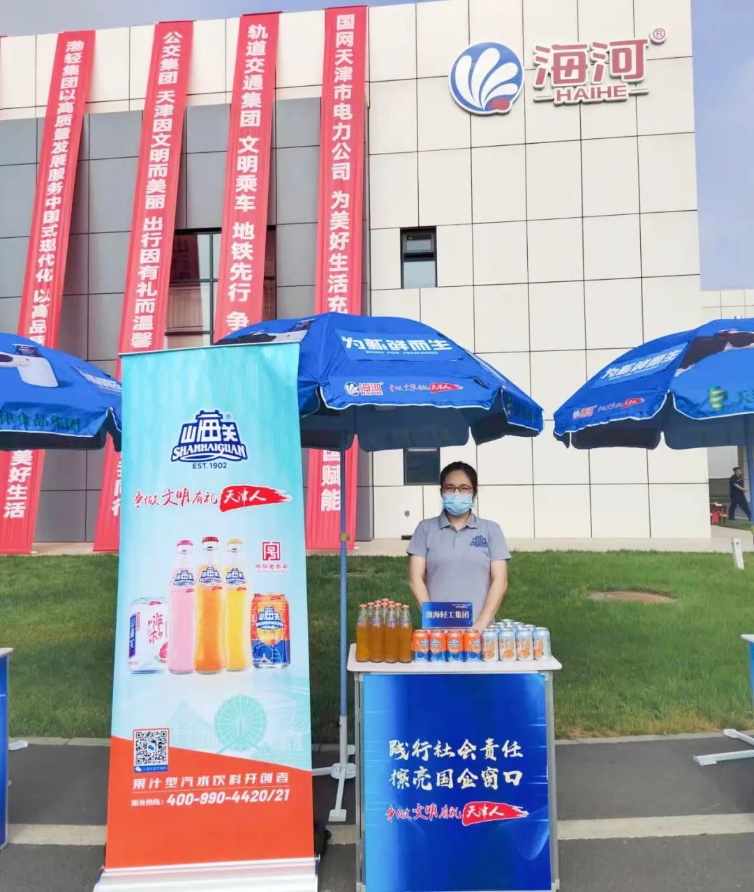 活动中,山海关饮料公司负责同志同食品集团、公交集团负责同志一道为印有“争做文明有礼天津人”标识产品进行展示发布,以品牌影响力促进文明城市建设深入持久开展。山海关饮料公司先进代表同张黎明、成卫东等国资系统先进榜样共同发起“争做文明有礼天津人”集体倡议。活动现场,山海关饮料公司精心打造产品宣传展台,宣传展示印有“争做文明有礼天津人”标识新品,并组织现场试饮及品牌推介。