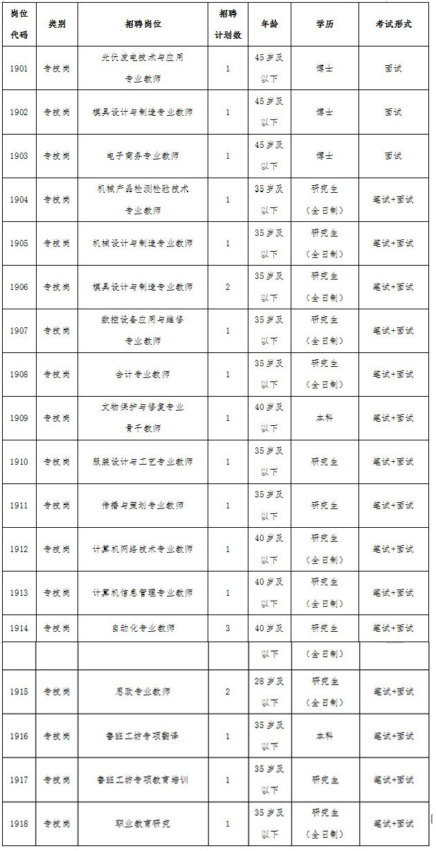 天津轻工职业技术学院2019年公开招聘专业技术人员实施方案