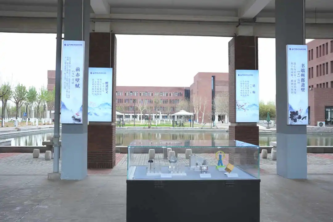长廊位于学院众创空间楼宇户外长廊处,目前已完成“史说廉洁”、“物说廉洁”、“诗说廉洁”、“画说廉洁”四个主题板块建设。其中,“史说廉洁”通过历史这面镜子,传递出思想内涵、价值观念和现实意义;“物说廉洁”以中国古代物质文化为载体,托物言志、借物明理,表达对修身齐家、敬廉崇俭的不懈追求;“诗说廉洁”通过中国古代廉洁诗词蕴含的历史沉思、清廉劝诫和高洁操守,批判贪婪腐败,弘扬清廉品德;“画说廉洁”位于涵哺楼一楼大厅,通过中国古代优秀书画作品,映照刚直不阿、清癯雅脱的独到意趣和洁身自好、不慕名利的生活态度。