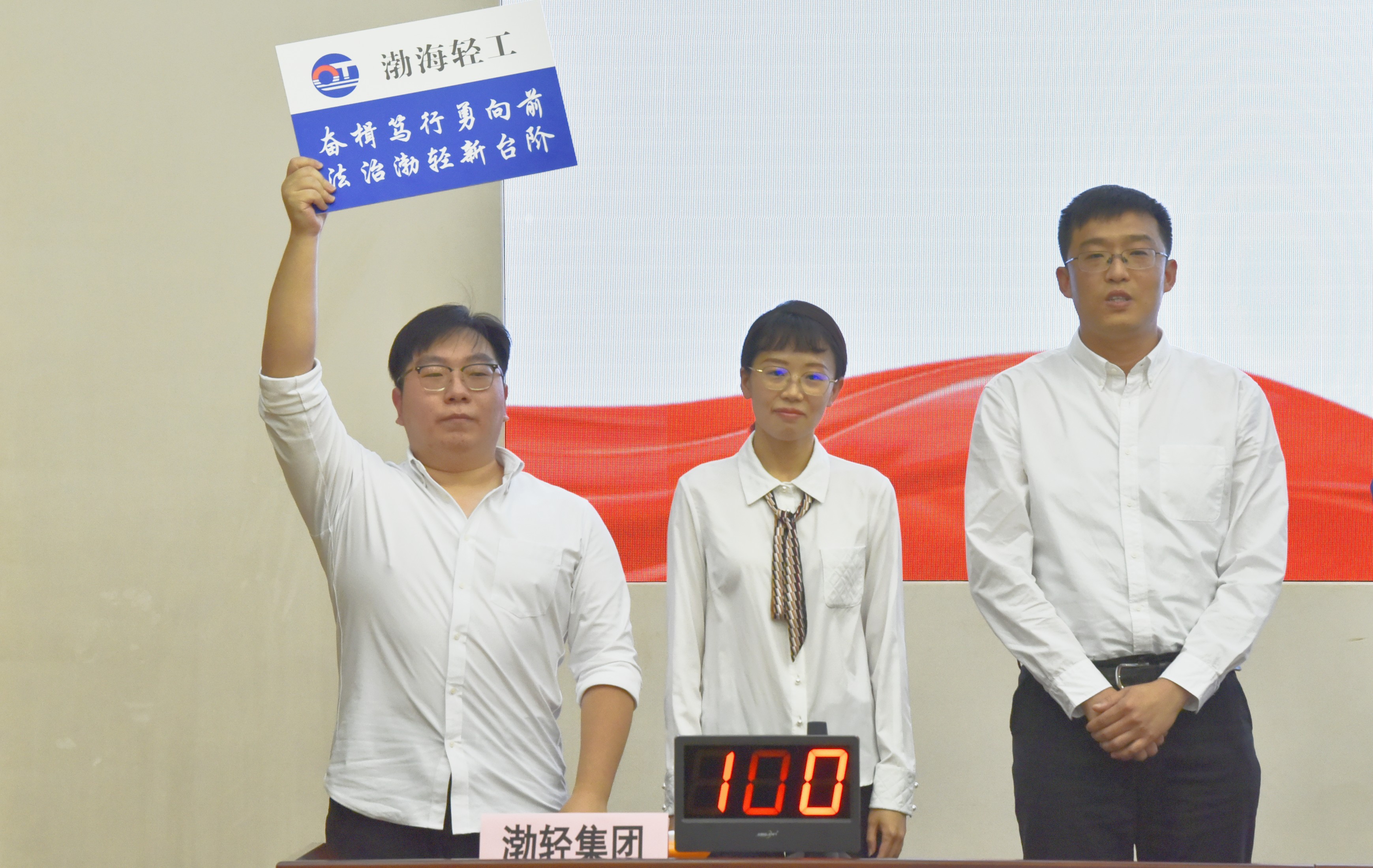 决赛现场比赛气氛热烈,在“奋楫笃行勇向前,法治渤轻新台阶”的参赛口号激励下,渤轻集团代表队奋力拼搏,不畏强手,展现出良好的精神风貌,经过一个多小时的闯关答题,获得了第四名。