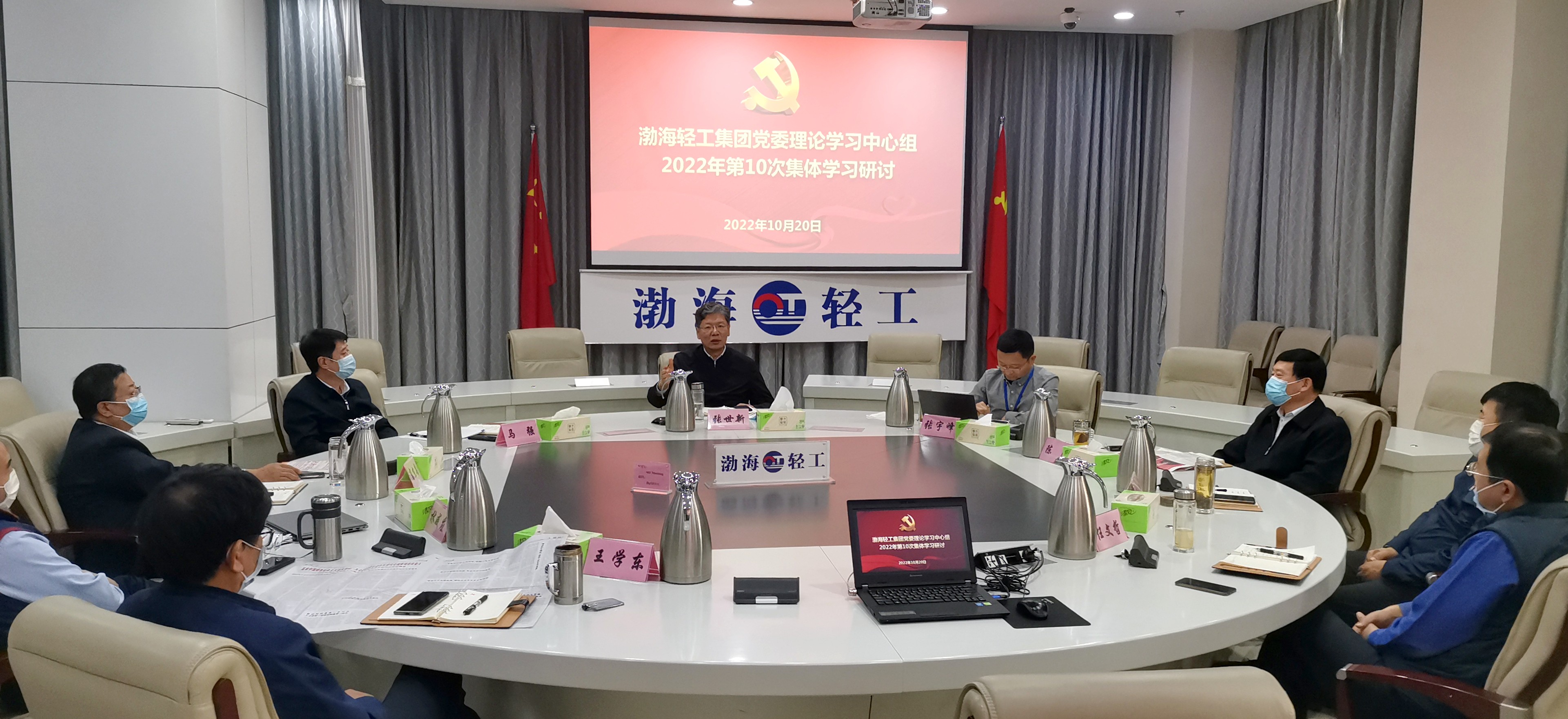 10月20日上午,渤海轻工集团党委理论学习中心组举行集体学习研讨,深入学习习近平总书记在中国共产党第二十次全国代表大会开幕会上所作的报告和参加党的二十大广西代表团讨论时的重要讲话精神,围绕党的二十大报告交流初步学习体会。集团公司党委书记、董事长张世新主持并领学。交流中,中心组成员紧密结合渤轻改革发展稳定中心任务,紧密结合工作实际,畅谈学习体会,明确努力方向。