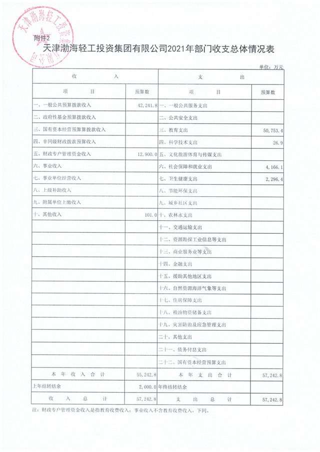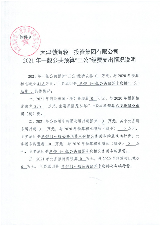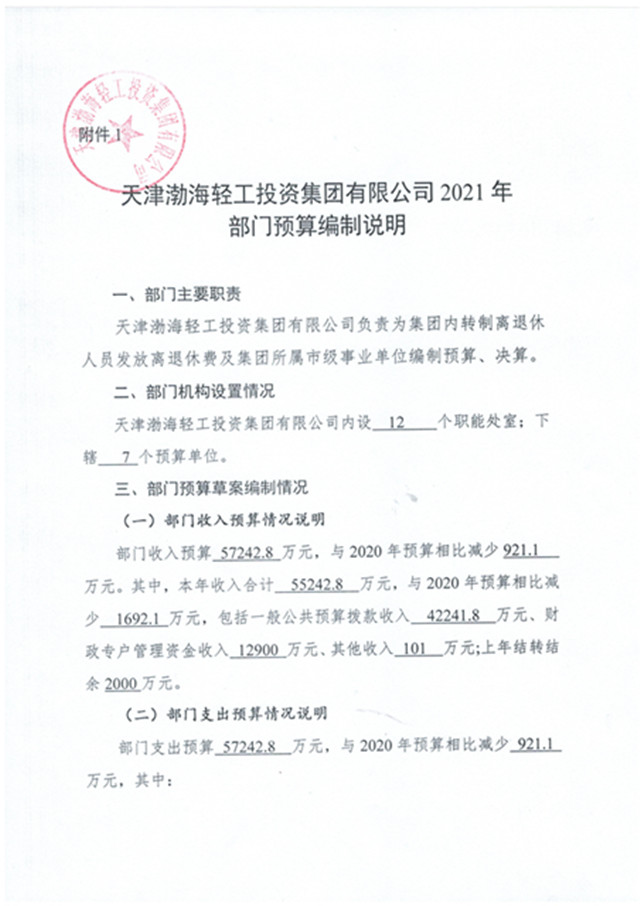 天津渤海轻工投资集团有限公司2021年部门预算编制说明_预决算公开专栏_天津渤海轻工投资集团有限公司