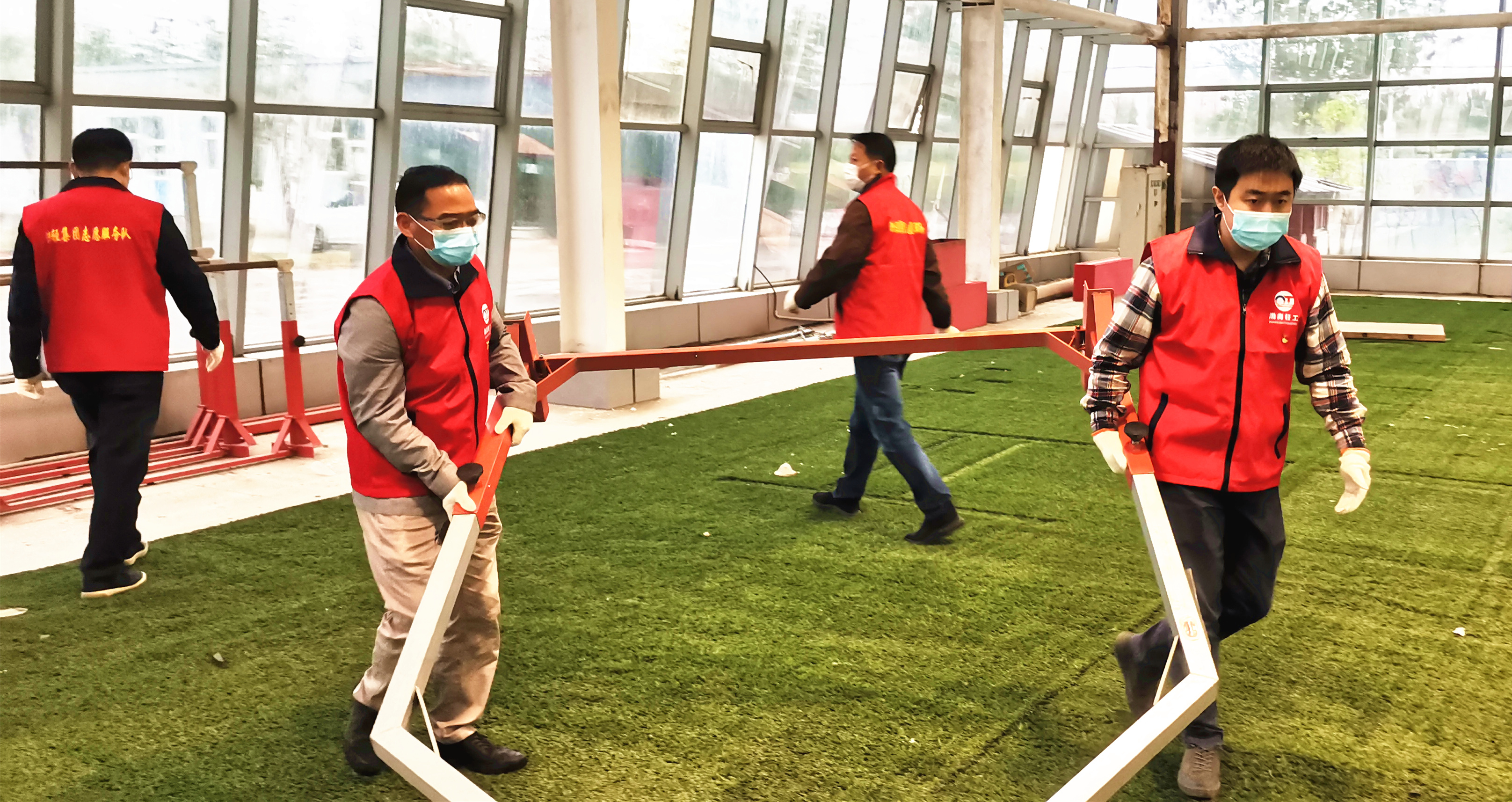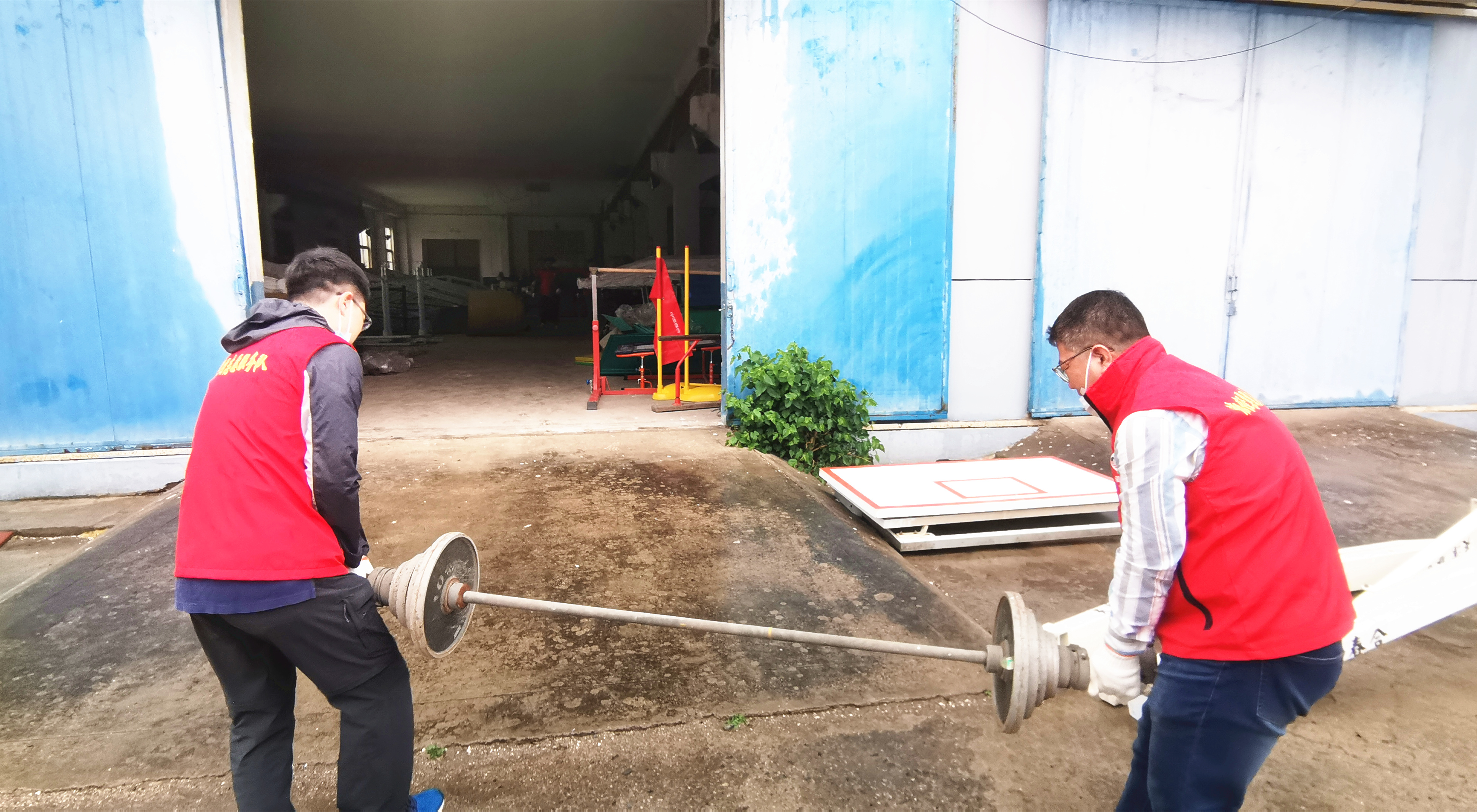 春合公司总经理禡玉春说:“大家真的太辛苦了!我们的器材不仅体积大而且都很重,一个杠铃片就要一百斤,可咱们的同志们不怕辛苦,撸起袖子就干,让我们基层企业深深感受到集团党委的关怀与温暖。”